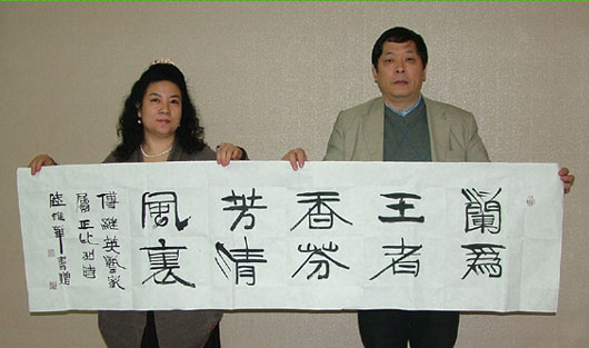 傅继英老师与陆维华教授及书法“兰为王者香……”