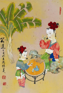 Fu Jiying (Miaoyin,painting family),he is anational first level artist.Now he is thepresident of Beijing Dayuan Laiyuanxiang Paint