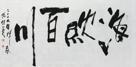 、《筑梦》等电视剧片名题字;中国网通I C卡系列题字(全国发行);《画说菜根谭》(“禅”、“道”、“儒”)题字。其书画作品市场润格价每平方