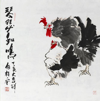 任桂安老师书画“雄鸡” 任桂安、傅继英老师书画“雄鹰”