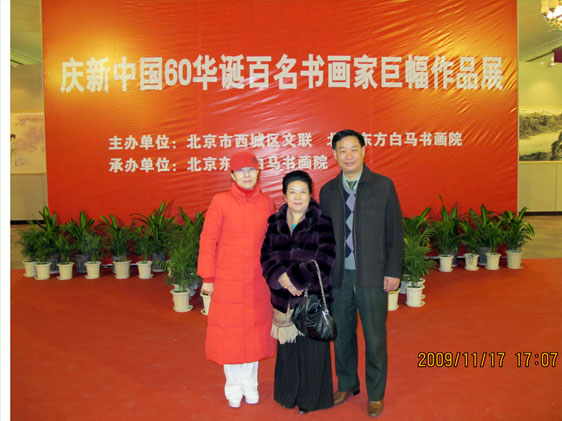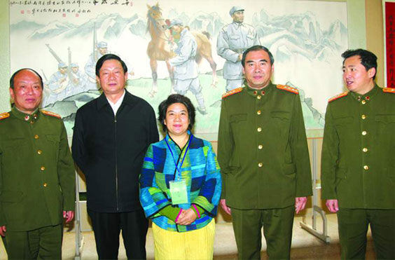 傅继英老师在全国政协礼堂“百名将军颂司令”书画展颁奖大会上首长等合影