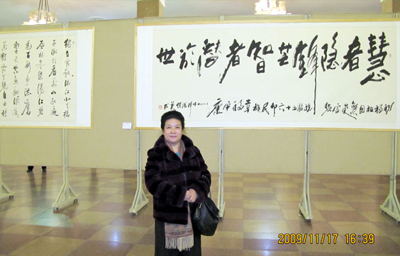 2006-12-26日傅老师在军事博物馆“百名将军颂司令”书画展作品前(背景画为任桂安、傅继英合作-峥嵘岁月)
