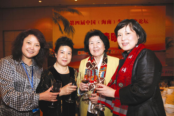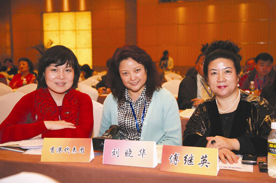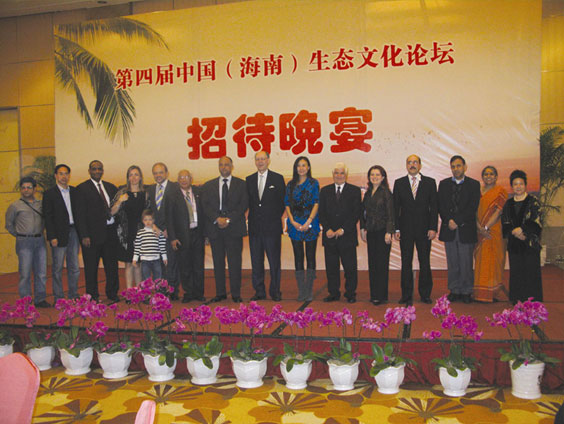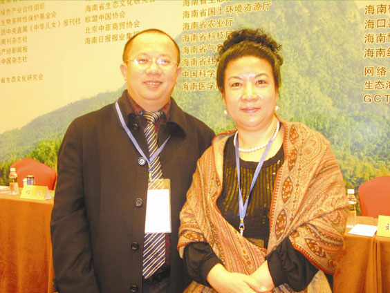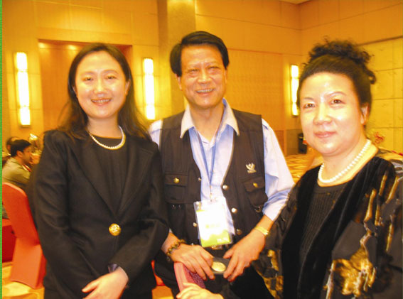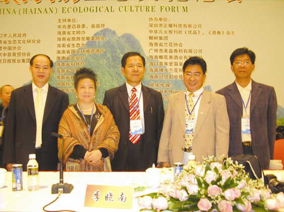 傅继英老师在《生态论坛》会上与大会的工作人员合影留念庆祝顺利举行