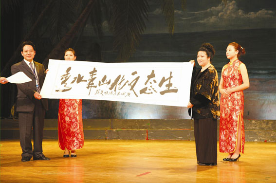 傅继英老师特为《生态论坛》送去题字“生态文化山青水秀”