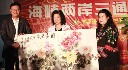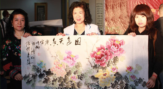 傅继英老师参加《海峡两岸三通》书画展与嘉宾留影