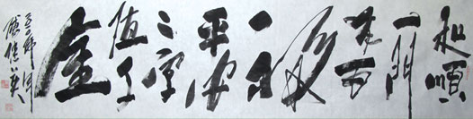 、《筑梦》等电视剧片名题字;中国网通I C卡系列题字(全国发行);《画说菜根谭》(“禅”、“道”、“儒”)题字。其书画作品市场润格价每平方