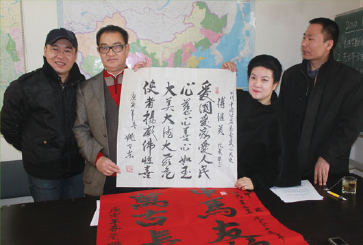 傅继英老师在北京中国学盟与赞助签约歌手陈清松等合影