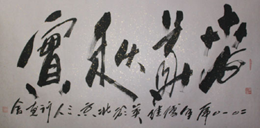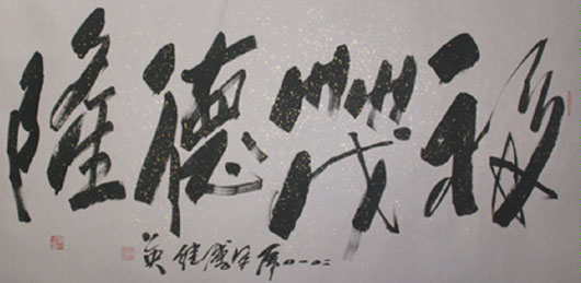、《筑梦》等电视剧片名题字;中国网通I C卡系列题字(全国发行);《画说菜根谭》(“禅”、“道”、“儒”)题字。其书画作品市场润格价每平方