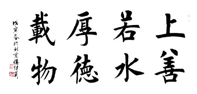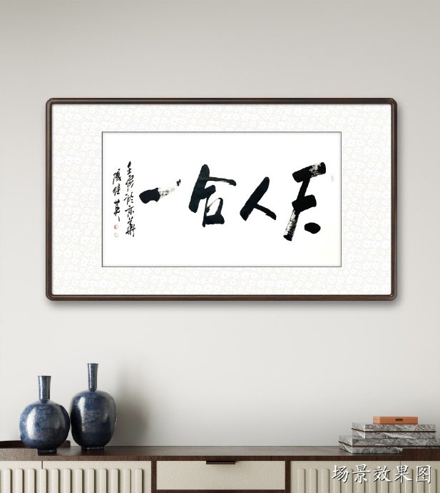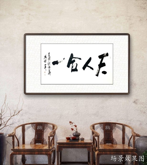 傅继英书法:天人合一。为中国哲学思想,儒、道、释等诸家各有阐述。天指天空,也指天道,还指自然大道,道家道教所说的天,多指自然、天道。天人合一,多指人与道合而“天地与我并生,万物与我为一”的境界,也指天人相合相应。
