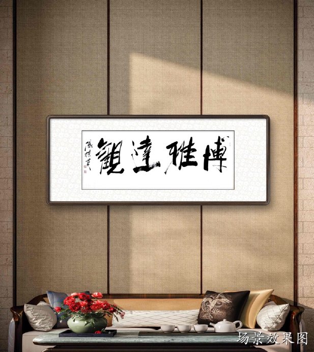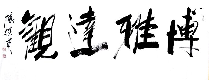 傅继英书法:博雅达观。是指一个人知识渊博,情趣高雅,而且能乐观开朗的看待周围的人与事。通常指比较有修养有涵韵的人。学识渊博、品行端正,心胸开朗、见解通达。一般用于赞扬一个人的学识与品性。