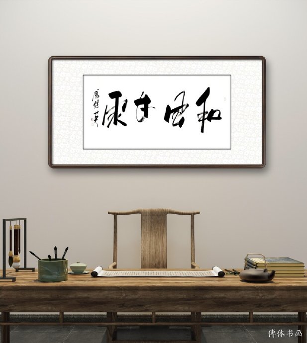 傅继英书法:和风甘雨。和风,泛指速度和缓的风,温和的风,暖和的风,冬天里的南风,春天里的微风等;甘雨,对农事特别适时的雨,甘霖。比喻语音和行为方式方法温和而不粗暴。