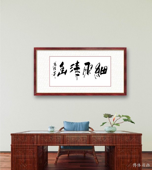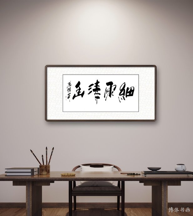 傅继英书法:细雨清幽。微微细雨,细雨漾漾。小雨,有山泉的清幽淳朴,有绵绵诗意;弥漫天空的小雨,没有阴沉悲凉,只有清新翠绿。