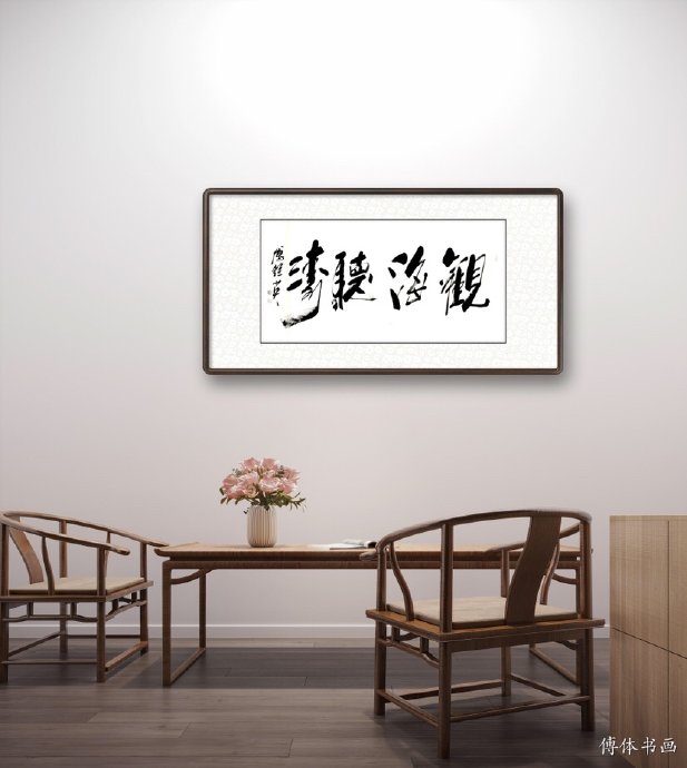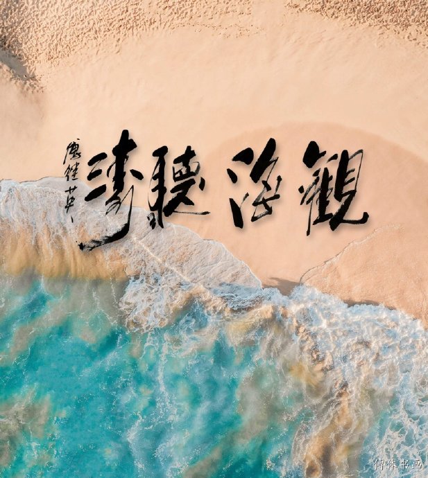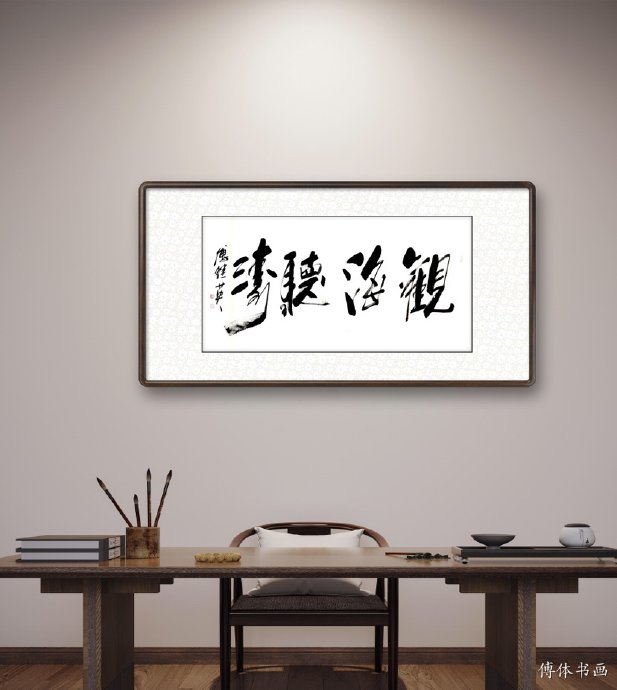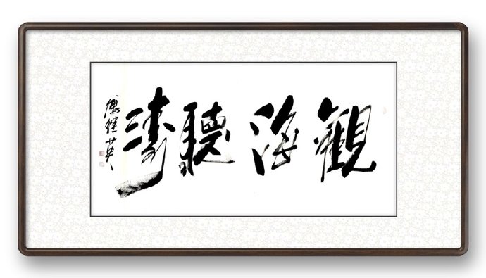 傅继英书法:观海听涛,意思就是观看大海的美景,倾听着波涛的声音。其实“观海听涛”说的是一种“不为物喜,不为己悲”的人生境界,在各种环境中都能保持一颗平和的心。在感受大海波澜壮阔的景象之时,自身的精神也得以升华。