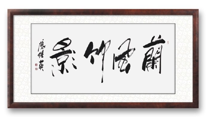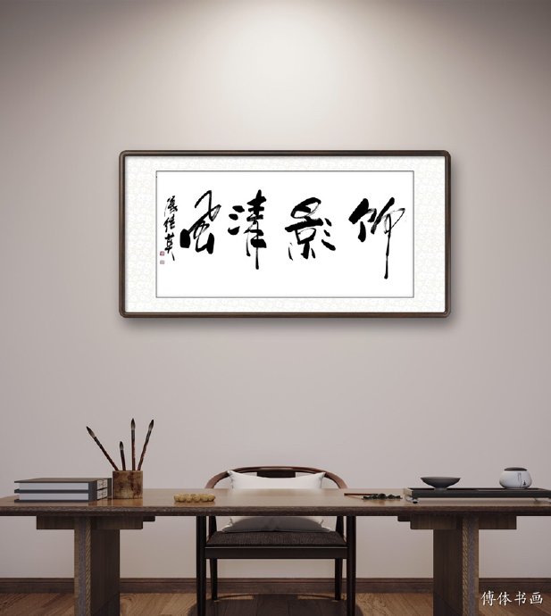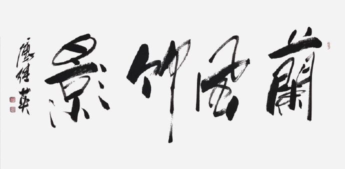 傅继英书法:竹影清风。意思是风吹动竹子,竹子在风中动了起来,地上的影子也随之浮动。出自唐太宗李世民的《赋帘》中的“竹影乱清风”。清风习习,潇洒多姿的竹影更显得秀丽文雅,婆娑起舞。 月光如水,清新和煦,恬淡宁静,幽美典雅的意境。
