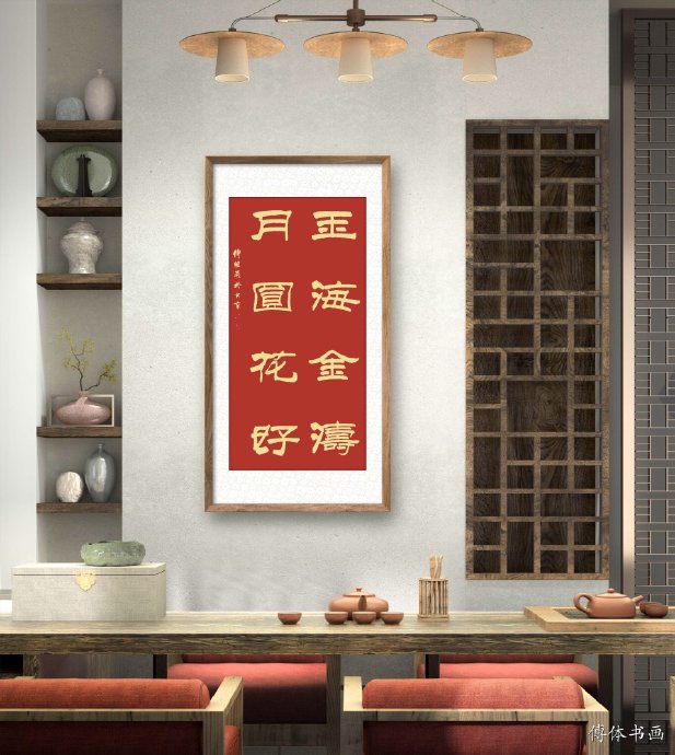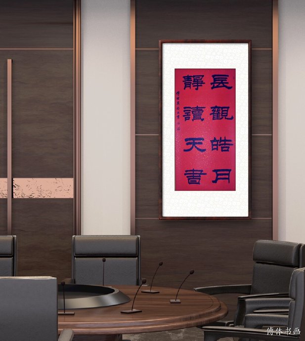 、《筑梦》等电视剧片名题字;中国网通I C卡系列题字(全国发行);《画说菜根谭》(“禅”、“道”、“儒”)题字。其书画作品市场润格价每平方