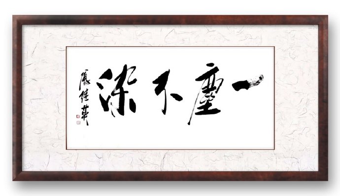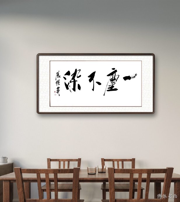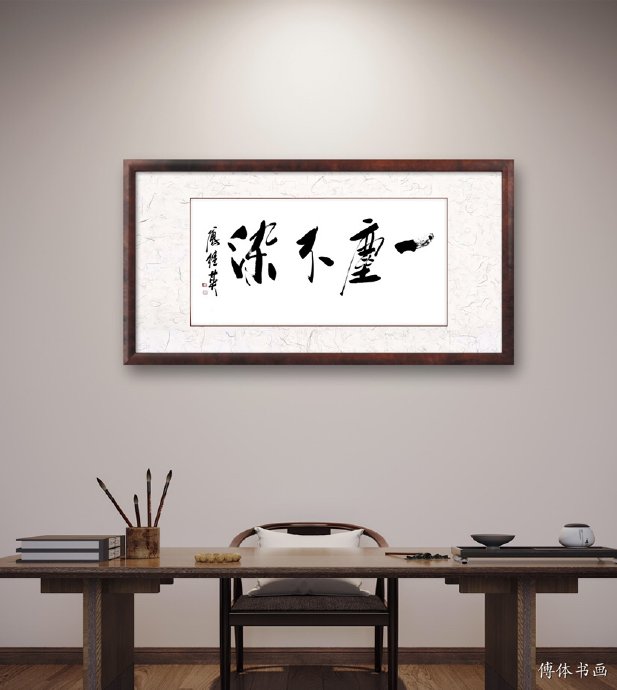 傅继英书法:一尘不染。意思是原指佛教徒修行时,排除物欲,保持心地洁净。现泛指丝毫不受坏习惯,坏风气的影响。也用来形容非常清洁、干净。 出处有《腊月小雪后圃梅开》《法苑珠林》。