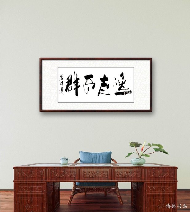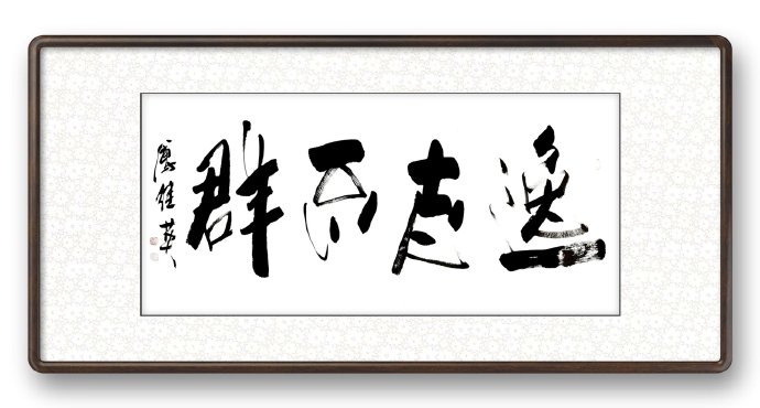 傅继英书法:逸志不群。 指坚守志操,不同流俗。出自《三国名臣序赞》,“公瑾卓尔,逸志不群”。命有华盖,特立独行,卓然不群,,与人相处和而不亲,亲而不腻,喜保持距离,常面冷心热不苟嬉笑,易被人误高不可攀。