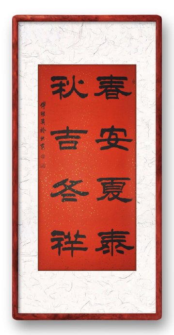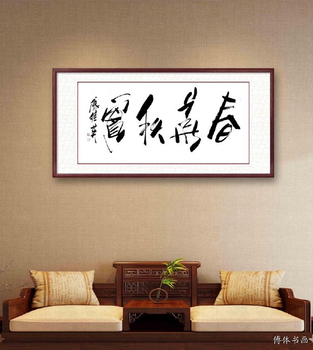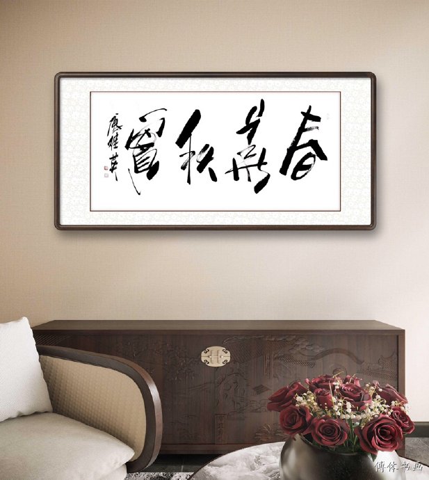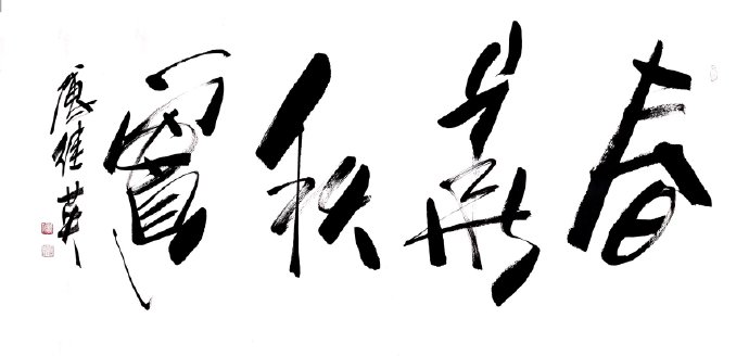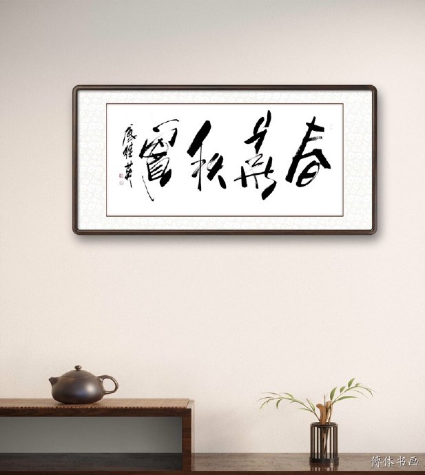 傅继英书法:春华秋实 意思是春天开花,秋天结果。比喻人的文采和德行。现也比喻学习有成果。出自《三国志·魏志·邢颙传》。