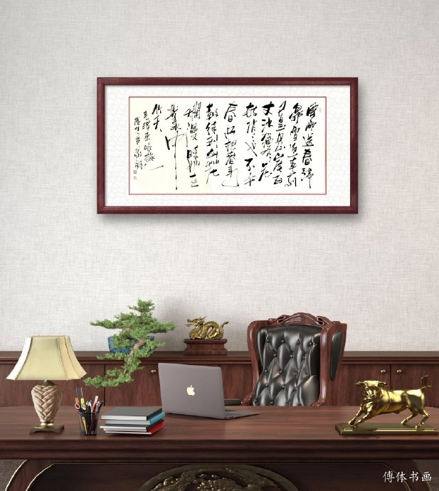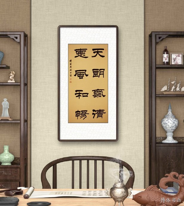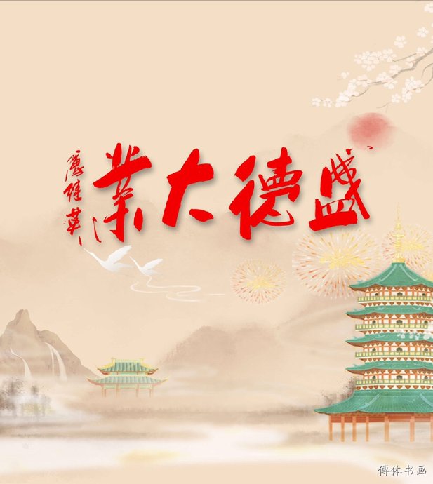 、《筑梦》等电视剧片名题字;中国网通I C卡系列题字(全国发行);《画说菜根谭》(“禅”、“道”、“儒”)题字。其书画作品市场润格价每平方