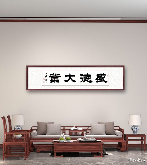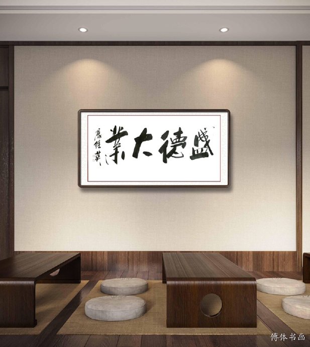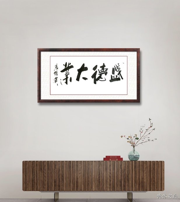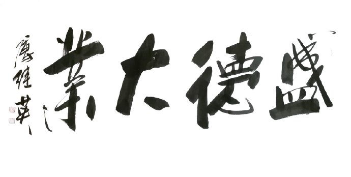 傅继英书法作品分享:盛德大业。出自《易经》“富有之谓大业,日新之谓盛德”。功业不能脱离德行,德行也不能脱离功业。因此,怎么样叫做“盛德”呢?日新之谓盛德,也就是日日更新,让自己的德行往上提升,那就是盛德了。合起来,“盛德大业至矣哉!”“盛德大业”就是最高的理想。由此可以看出儒家那种“道德不离事功”的立场。