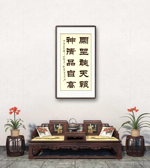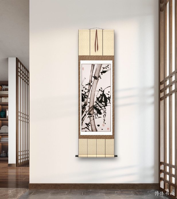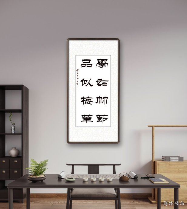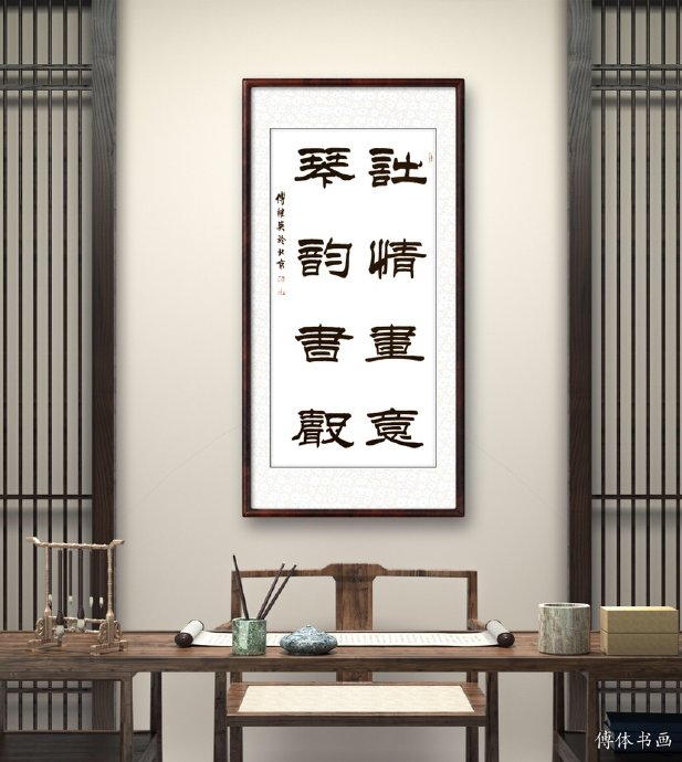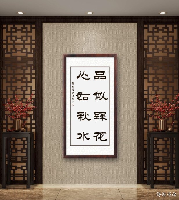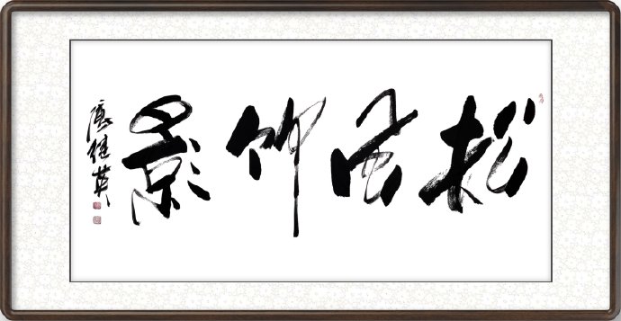 傅继英书法:松风竹影。意思是具有像松树一样的刚强挺拔的风骨和像竹子一样轻柔飘逸的韵味。"松"作为常见的品藻象喻,由儒家比德观念发展而来,又同时具有了超功利的审美性,突出了悲情的生命意识。"竹"因"竹林七贤"的出现,由实用功能转向审美功能。因王子猷的痴迷,"竹"意象中高逸而自我的人格象征意味更加突。