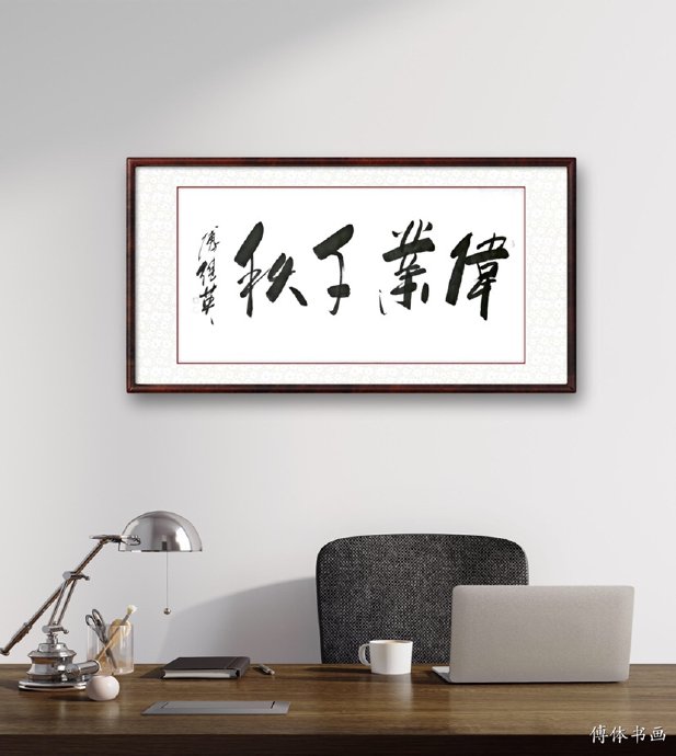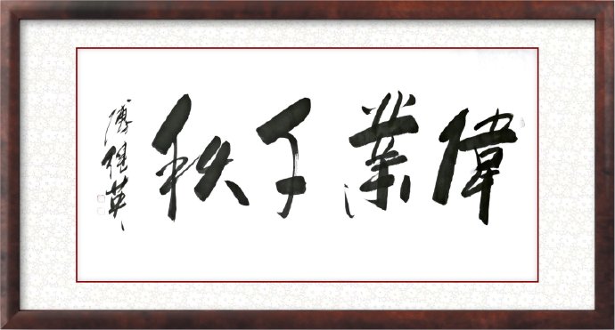 傅继英书法作品分享:伟业千秋。意思就是千年伟业,这里的千秋是虚指,代表很多很多年,长长久久的意思。伟业千秋指长长久久的伟大事业。旧指打下江山做皇帝,可以传承千年,或者是做的某些事可以泽被后世千年。伟业千秋添虎气;鹏程万里展鸿图。英雄气概如龙虎;祖国江山似画图。