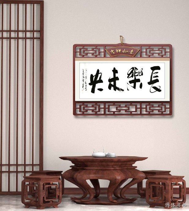 秒懂成语傅继英书法作品欣赏:长乐未央。意思是长久欢乐,永不结束。出自汉代文物汉长乐未央瓦当。面径17.5厘米。近边轮处饰一周凸棱,当心圆内饰一突起大乳钉,双线界格将当面分成四区,阳文篆书“长乐未央”四字分置其间。