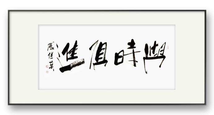 傅继英书法作品《与时俱进》是一种积极的生活态度和社会价值观的体现,适合在不同场合传播与践行。在办公室或会议室悬挂《与时俱进》,可以激励员工和团队在工作中保持创新与进取的精神,推动企业不断发展。在学校的教室、图书馆或走廊中悬挂,能够激励学生积极学习、与时俱进,培养他们适应时代变化的能力。在家庭的客厅或书房悬挂,提醒家人要与时俱进,拥抱变化,鼓励彼此在生活中不断成长和进步。在文化中心、社区活动室或展览厅等公共场所悬挂,能够传播积极向上的社会价值观,鼓励公众关注时代发展与自我提升。