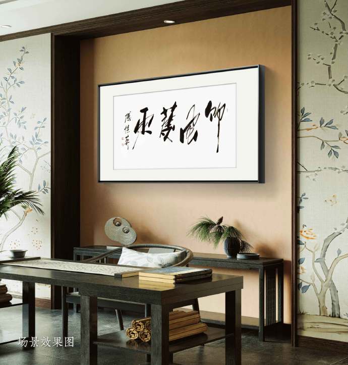 傅继英书法《竹风蕉雨》无论是在家中还是在工作场所,这幅书法作品都能为环境带来积极的能量,激励人们在生活中追求内心的安宁与高尚的理想。书房是学习和思考的地方,悬挂《竹风蕉雨》能够营造一种静谧的氛围,激励人们追求内心的宁静和智慧。在客厅悬挂这幅作品,可以为家庭增添文化气息,体现主人的品味。同时,竹子象征着坚韧与高洁,适合表达家庭的和谐美满。在办公室或会议室悬挂,可以带来清新的气息,提醒人们在工作中保持冷静与清晰的思维,追求高尚的职业道德。茶室是品茶与放松的空间,悬挂《竹风蕉雨》可以提升空间的雅致感,让人感受到茶香与竹韵交融的恬静。