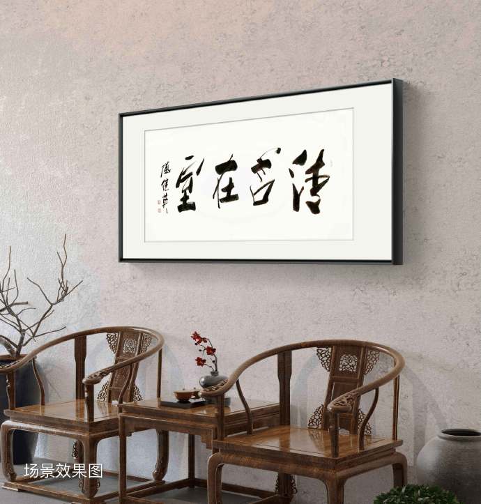 傅继英书法作品《清言在室》适合悬挂在厅室、书房、茶室等场所,让人置身其中便能感受到一种恬淡、静谧的氛围。在家庭的核心区域悬挂《清言在室》,可以营造出一个温馨而宁静的氛围,提醒家人珍惜彼此的交流,保持内心的平和与智慧。这种环境有助于增进家庭成员之间的感情,让家成为一个充满爱与理解的港湾。书房是思考与学习的地方,《清言在室》在此悬挂,象征着追求知识与智慧的精神。它激励人们在繁忙的学习和工作中保持内心的宁静,帮助思绪的沉淀与升华,助力灵感的迸发。在办公室悬挂《清言在室》,可以为工作环境注入一股清新之气,提醒同事们在竞争与压力中保持冷静与理智。它传递出一种积极向上的工作态度,鼓励团队团结合作,共同应对挑战。