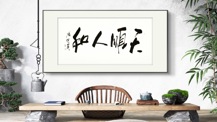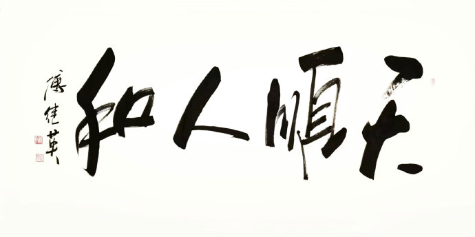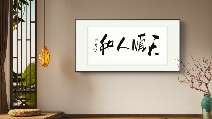 作品《天顺人和》体现了天时、地利、人和的意境,表达了人与自然、人与人之间相互尊重、相互理解、共同发展的理念。通过书法艺术的表现形式,将这种美好愿景传递给观者,激励人们积极向上、和谐相处,共同营造和谐美好的社会环境。