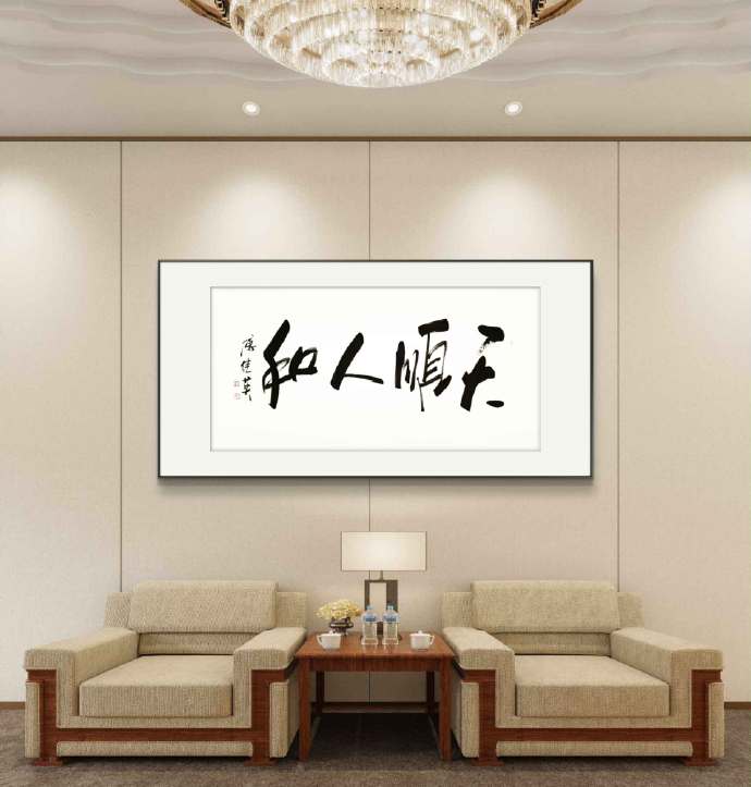 傅继英书法作品《天顺人和》适合在家庭客厅、办公室、会议室、学校教室等场所悬挂。这幅作品传达了和谐共生、团结奋进、友爱互助的正能量,适合用来提醒人们珍惜亲情、友情和社会和谐,激励大家共同努力,共同创造美好的未来。