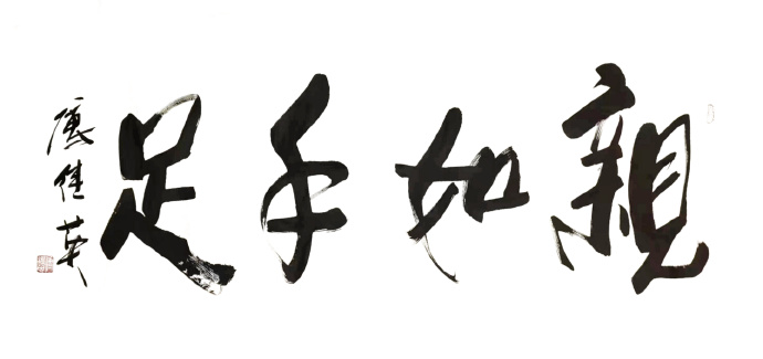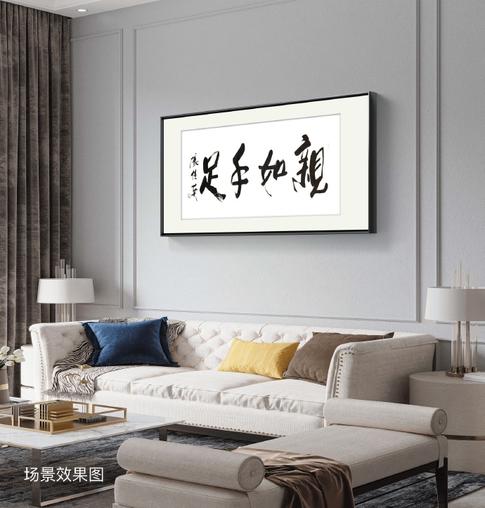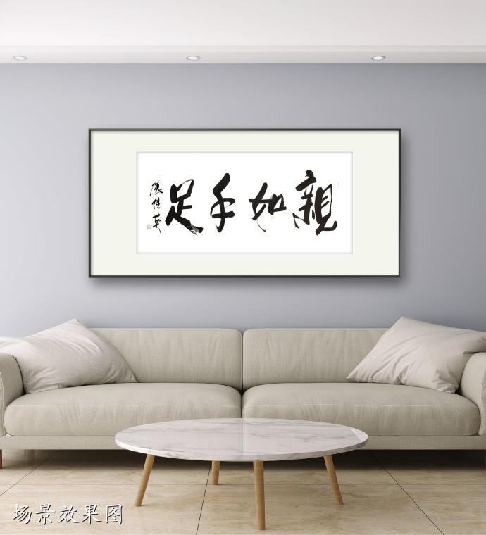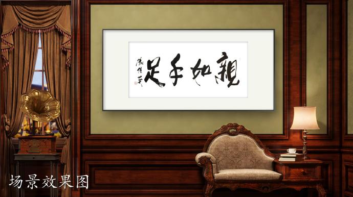 傅继英书法作品《亲如手足》适合在家庭客厅、书房或卧室等私人空间悬挂,也适合在朋友间的相聚之处,如客厅、餐厅等地方展示。寓意着珍惜亲情友情,团结支持彼此,共同创造美好的生活。