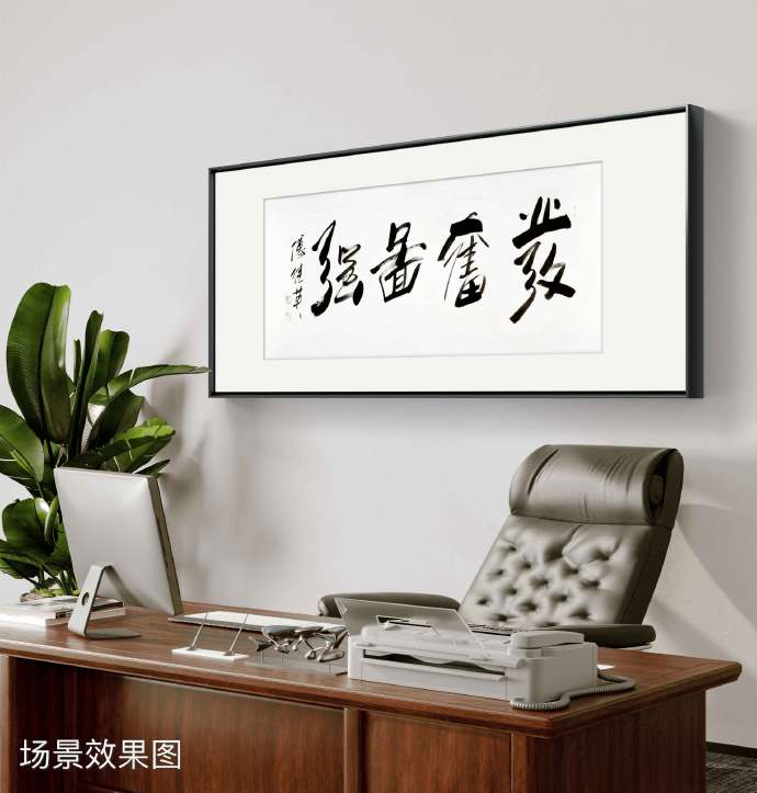 傅继英书法作品“发奋图强”传达出积极向上的精神态度和人生哲理,激励人们在面对困难和挑战时不畏艰难,勇敢前行。它代表着追求进步、超越自我、不断奋斗的精神,鼓舞人们不断努力,勇往直前,实现自身的梦想和目标。把“发奋图的书法作品挂在家中或办公场所,可以时刻提醒自己和他人要保持积极的心态,努力拼搏,追求成功。它也是一种精神力量的象征,能够带来正面的影响,让人在面对挑战时更加坚定和勇敢。在办公室挂上“发奋图强”的书法作品,可以激励员工积极工作,努力拼搏,提高工作效率和成就感。在家中的客厅或其他家庭空间挂上“发奋图强”的书法作品,可以提醒家人们要积极面对生活,勇敢拼搏。