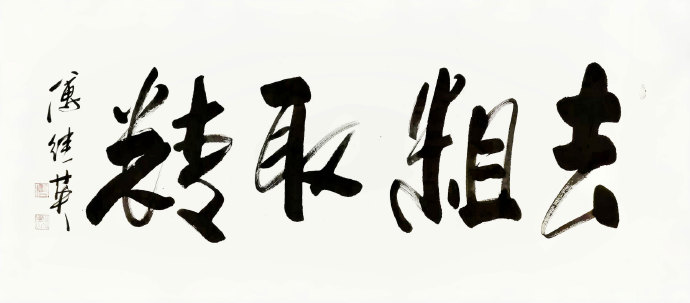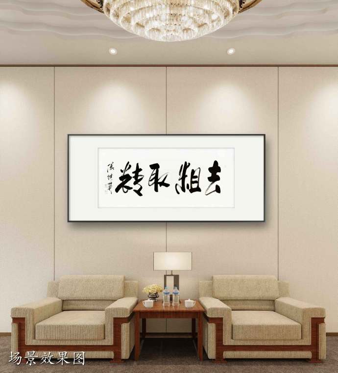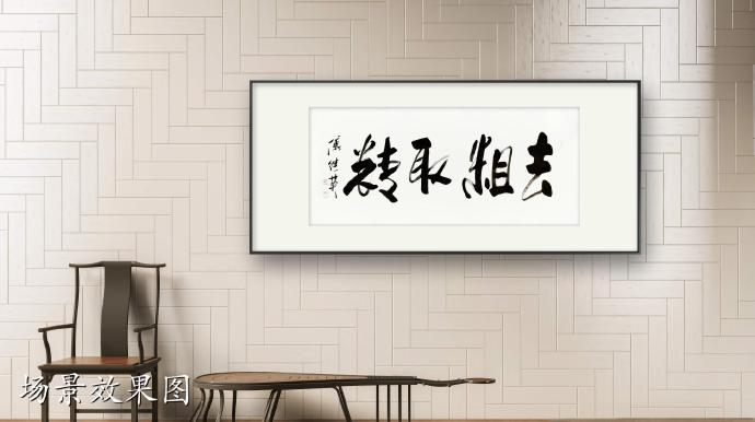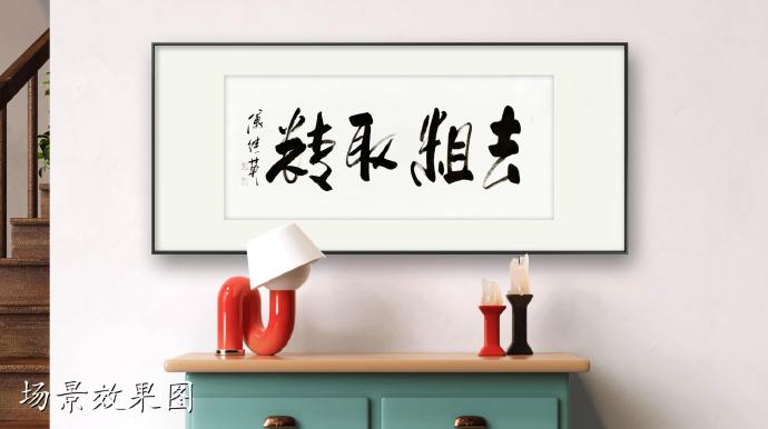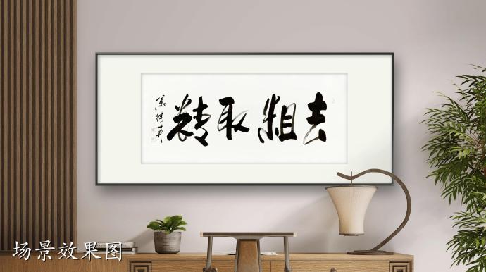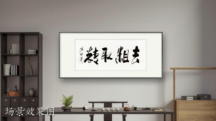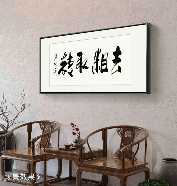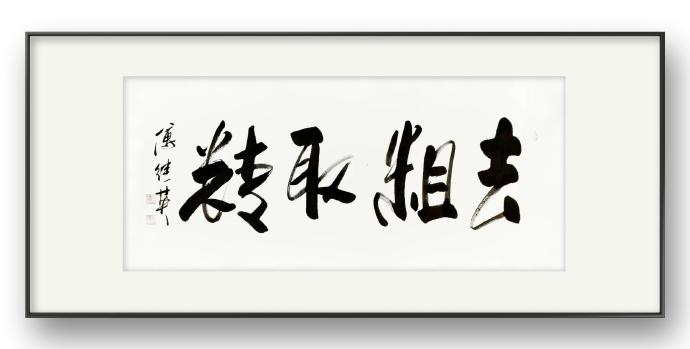 傅继英书法作品“去粗取精”可以适合在家庭、办公室、学校或其他场所悬挂,以提醒自己和他人在生活中如何选择简化、追求卓越,抛弃烦恼,专注精致。 在家中悬挂“去粗取精”书法作品,可以提醒家人们在日常生活中保持清晰头脑,处理事务时善于取舍,培养家庭成员的积极心态和高效生活方式。在办公室挂上这幅作品,可以激励员工们在工作中追求卓越,提高工作效率,帮助团队管理者指导团队成员在工作中做出正确选择,提高团队整体绩效。