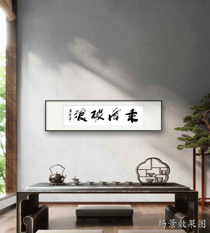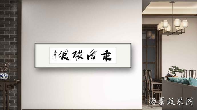 傅继英书法作品“乘风破浪”适合在办公室、书房、客厅等场合悬挂。办公室悬挂“乘风破浪”的书法作品,既能展示企业家的雄心壮志,又能激励员工奋发向前,共同努力实现企业目标;书房悬挂这幅作品,可以彰显主人的人格魅力,以及对于文学艺术的热爱和追求;客厅悬挂这幅作品,则能增加家居环境的文化氛围,寓意着家庭生活充满激情与活力。