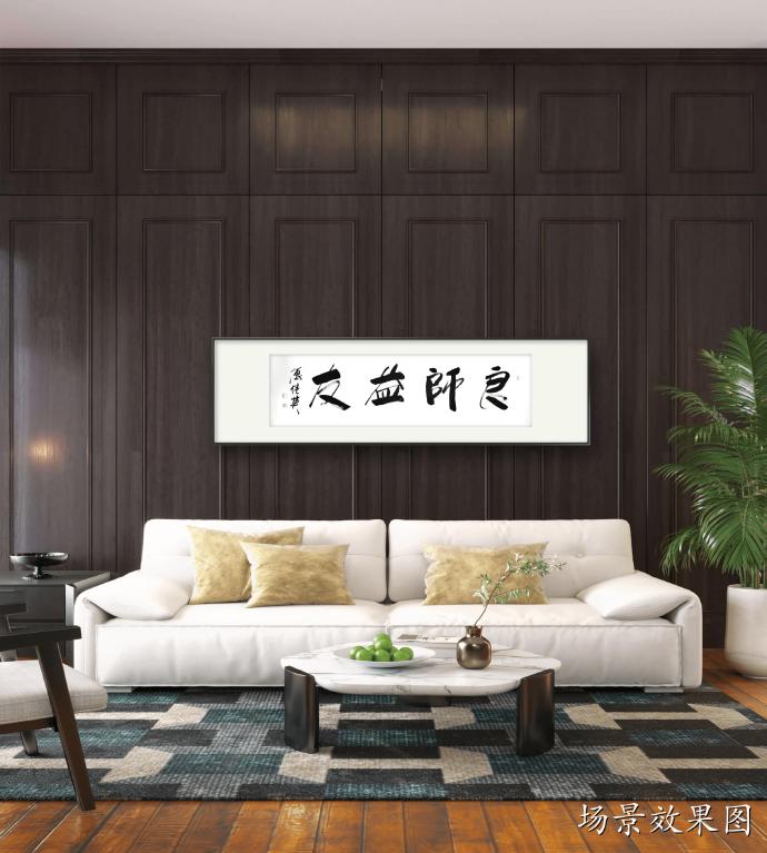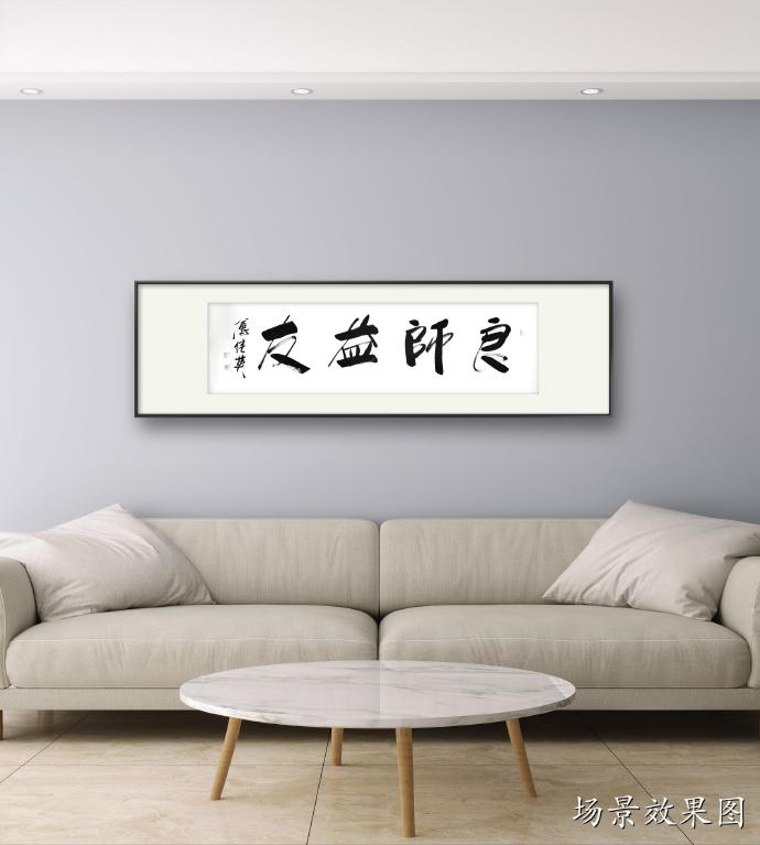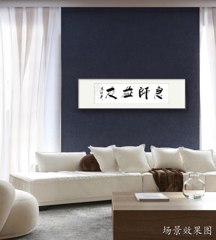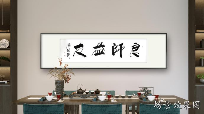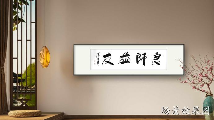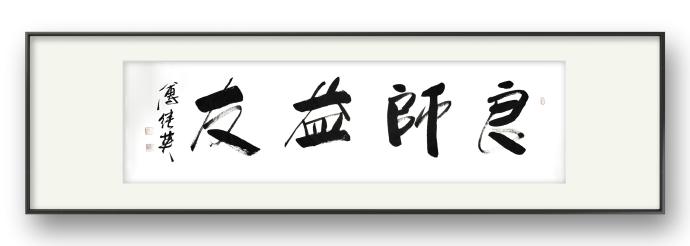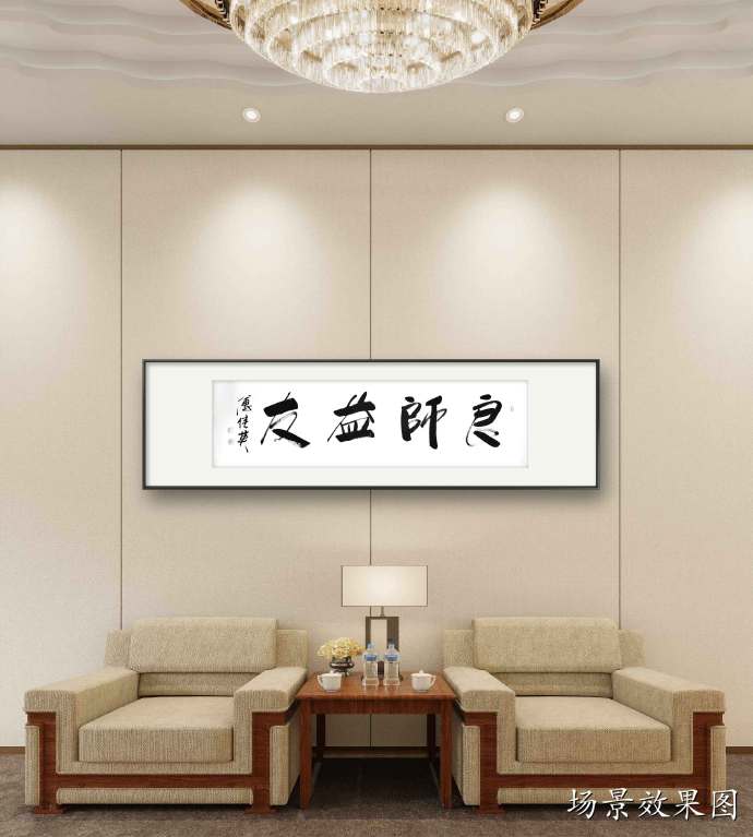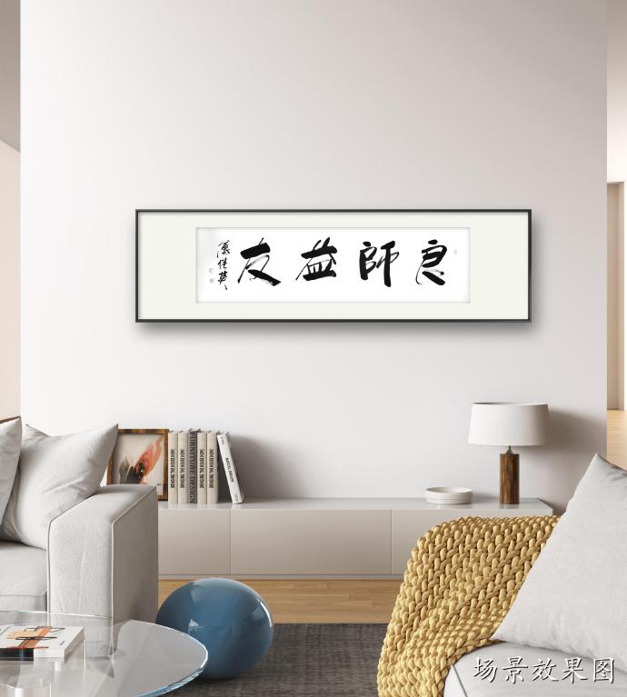 傅继英书法作品《良师益友》适合在学校、家庭、办公室等地悬挂,特别是教师办公室、学生宿舍、家庭客厅等地。它可以作为墙上的装饰,同时也传达了一种积极向上的价值观念。这幅作品的寓意是表达了良师益友对于我们成长的重要性。书法作品传达出一种庄重、稳重的气息,整体布局简洁明快,书法笔画粗犷有力,寓意着良师益友的教导和支持能够让我们成长得更加扎实、坚定和自信。