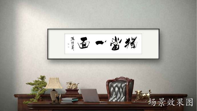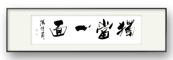 傅继英书法作品“独当一面”适合悬挂在办公室、学习室、书房、会议室等地方,以提醒人们要有独立思考、坚定信念的精神,勇敢地面对困难和挑战,独自一人走出自己的道路,不被外界干扰和左右,追求自己的目标和理想。