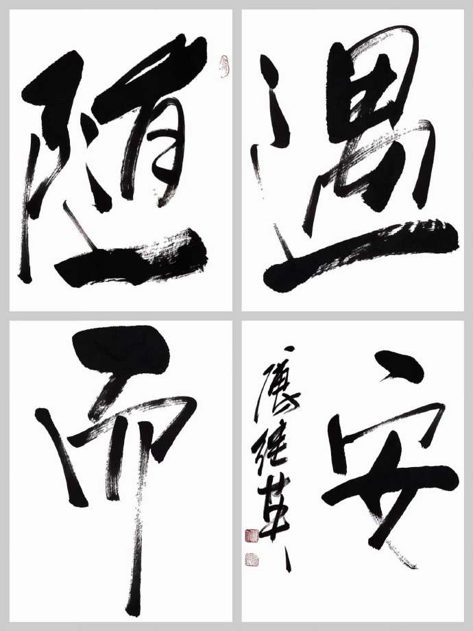 傅继英书法作品“随遇而安”适合在家中放置,如客厅、书房等位置,也适合在公司、办公室等场所悬挂。其寓意是要求人们不要被外界的干扰所影响,保持内心平和,随遇而安地面对生活的起伏和挑战。让人们珍惜当下的生命和美好,不为功名利禄所追逐,从生活中汲取智慧,不断成长和完善。此书法作品的悬挂,可提醒人们要抱着一颗平和的心态去面对生活,不被外界的琐事所困扰,心态才能更加健康和自在。