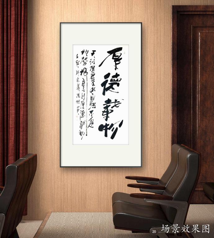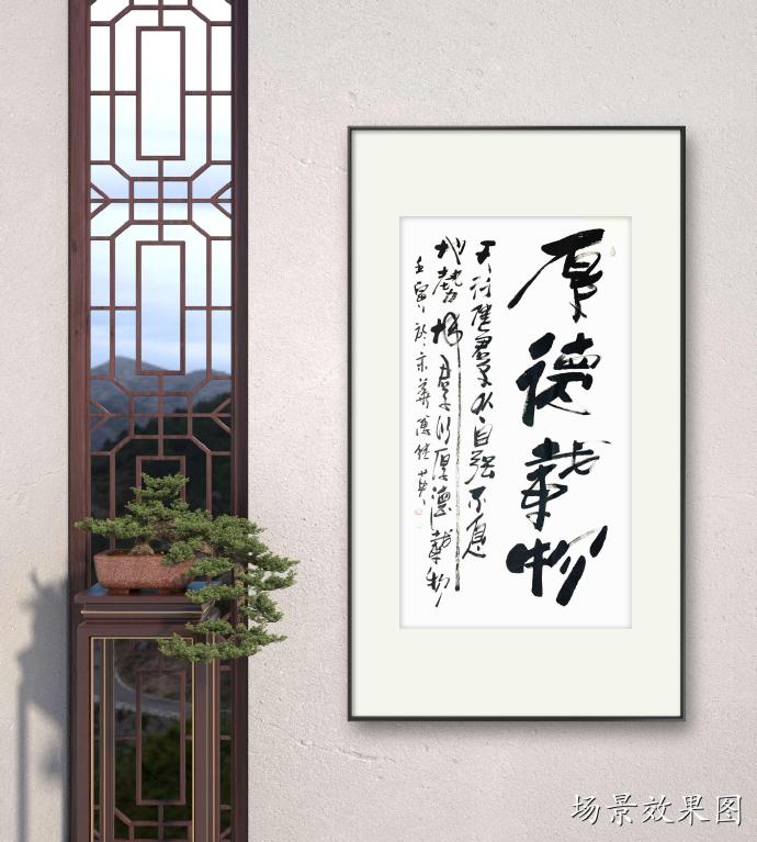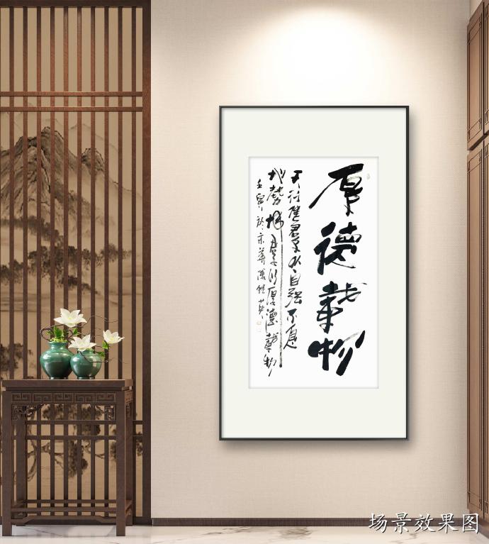 四字成语书法傅继英行书《厚德载物》增厚美德容载万物
