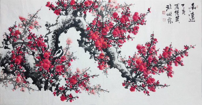 无论是客厅、玄关、走廊、书房、餐厅、卧室等场合,梅花字画都是非常适合的装饰品,能够为家居增添高雅、文化的气息。在选择梅花字画悬挂的位置时,还需要考虑到悬挂的高度和悬挂的数量。一般来说,大型的梅花字画适合悬挂在较高的位置,小型的梅花字画适合悬挂在较低的位置。悬挂梅花字画的数量也需要注意。如果在一个房间内悬挂多幅梅花字画,需要注意梅花字画的风格、色彩和尺寸的搭配,以避免视觉冲突。同时,也需要注意梅花字画的数量不宜过多,以免给人过于拥挤和杂乱的感觉。