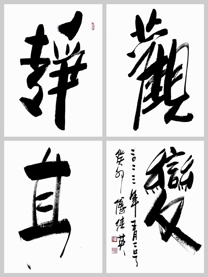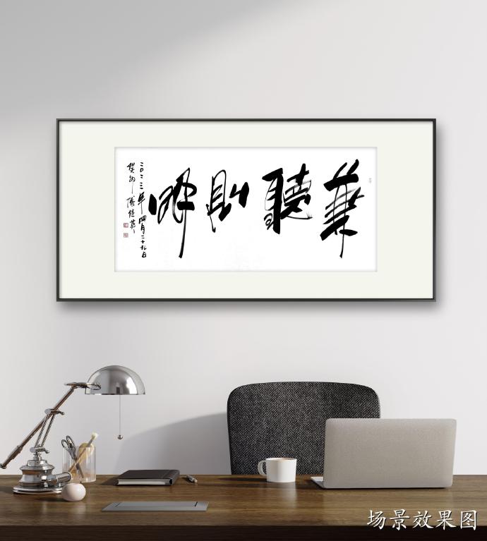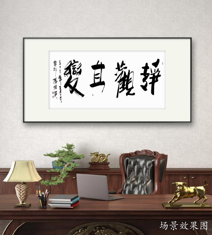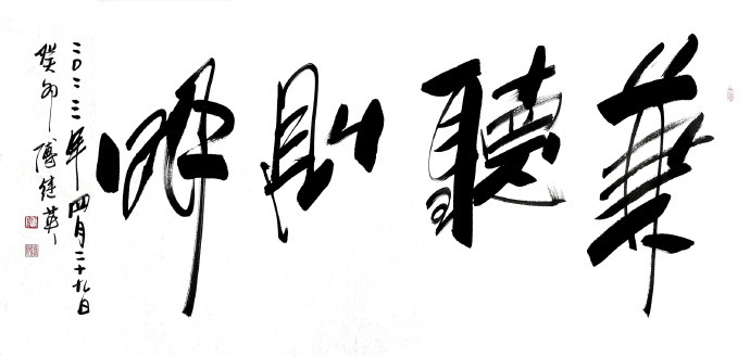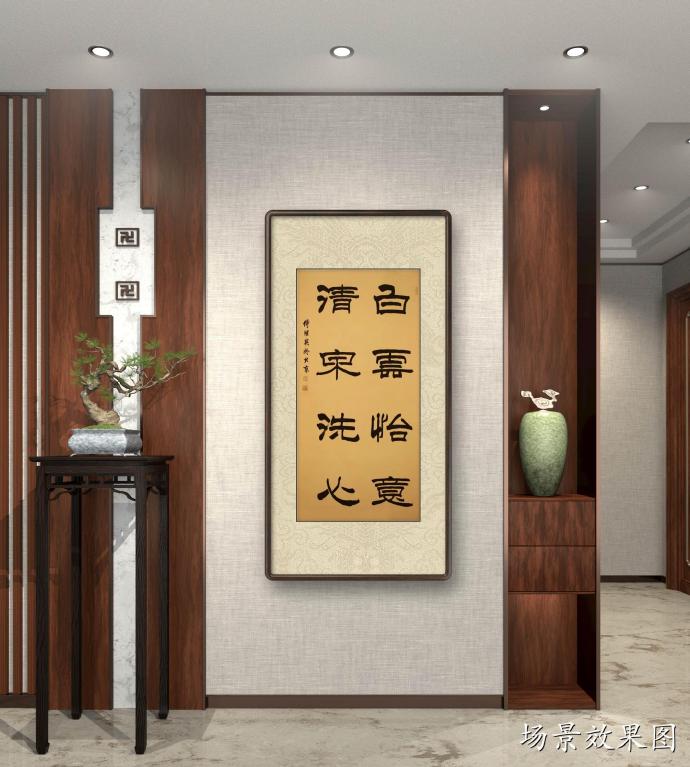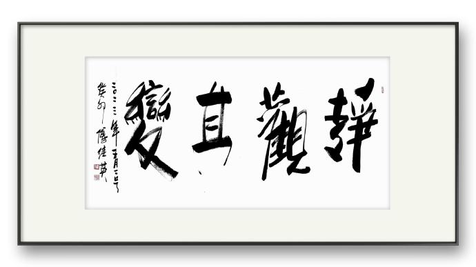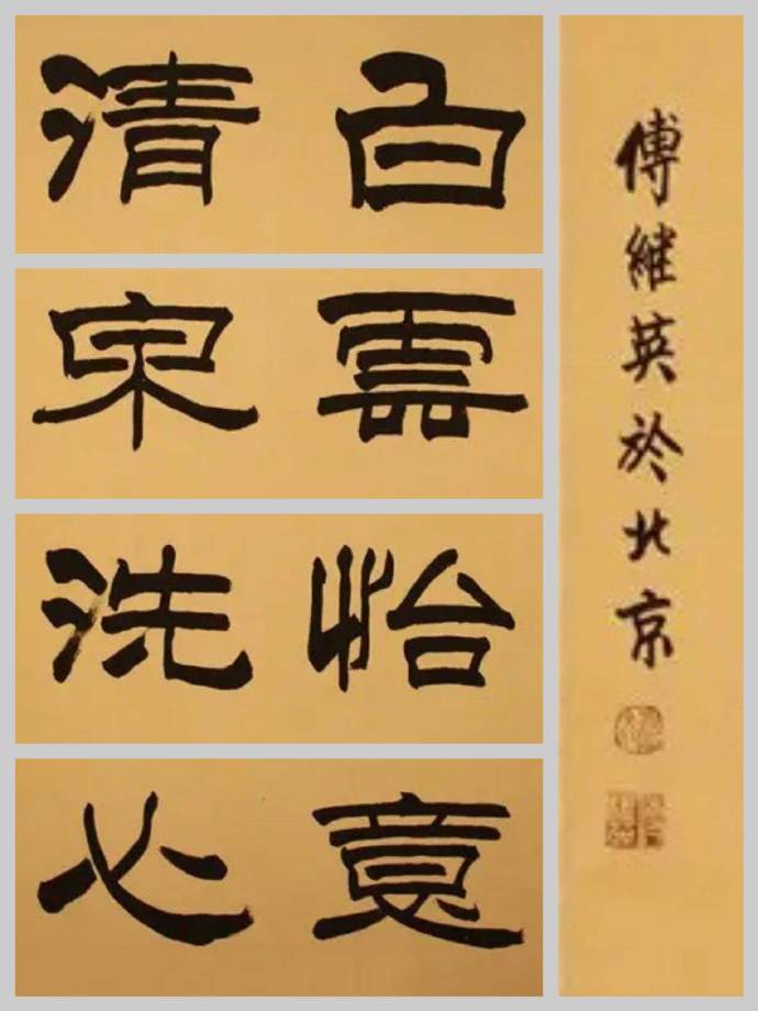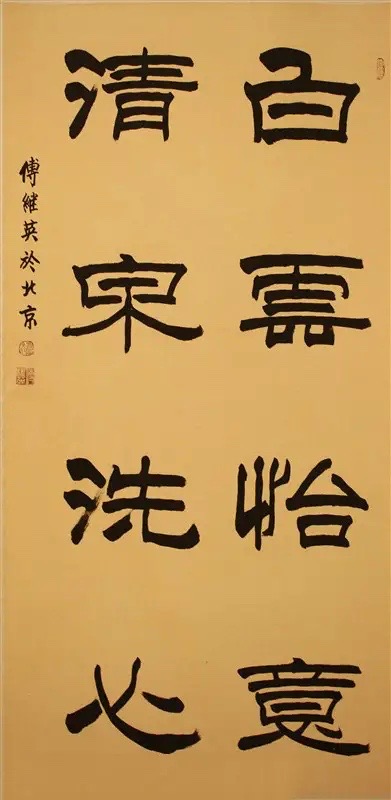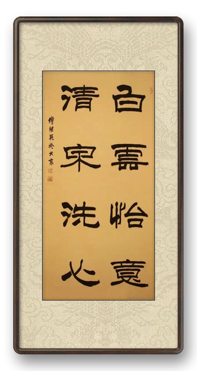 傅继英书法《惠风和畅 秋月清华》,“惠风和畅”形容了气候宜人、风景怡人的意境,意味着自然环境的舒适和宜人。而“秋月清华”则表达了月色清冷、光芒透彻的意象,以及清华的境界和高远的空灵之美。也是一种表达对自然和人文环境的赞美和向往。它传递出一种对美好生活和精神境界的向往和追求,同时也反映了人们对自然和人文环境的尊重和珍视。
