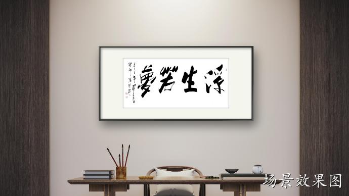 傅继英书法《花间酌酒 石上题诗》 出自唐代诗人白居易的一首诗,诗中描绘了作者和友人在山间花园里小酌、赏花、题诗的情景,这种雅致的生活方式被视为一种高尚的文化修养,富有浪漫情调。表达了对自然美景的赞美和对友情的珍视。