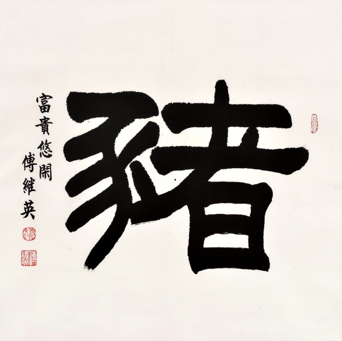 猪:被视为豪放谦和,朴拙憨厚,随遇而安,与世无争的象征。有安居乐业,丰衣足食之吉祥寓意。