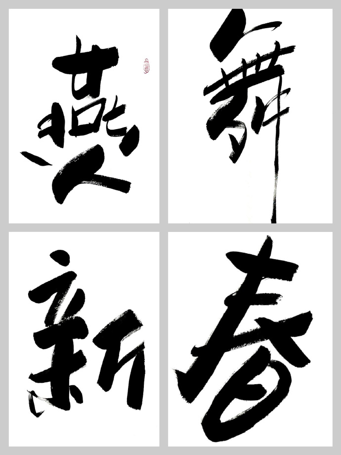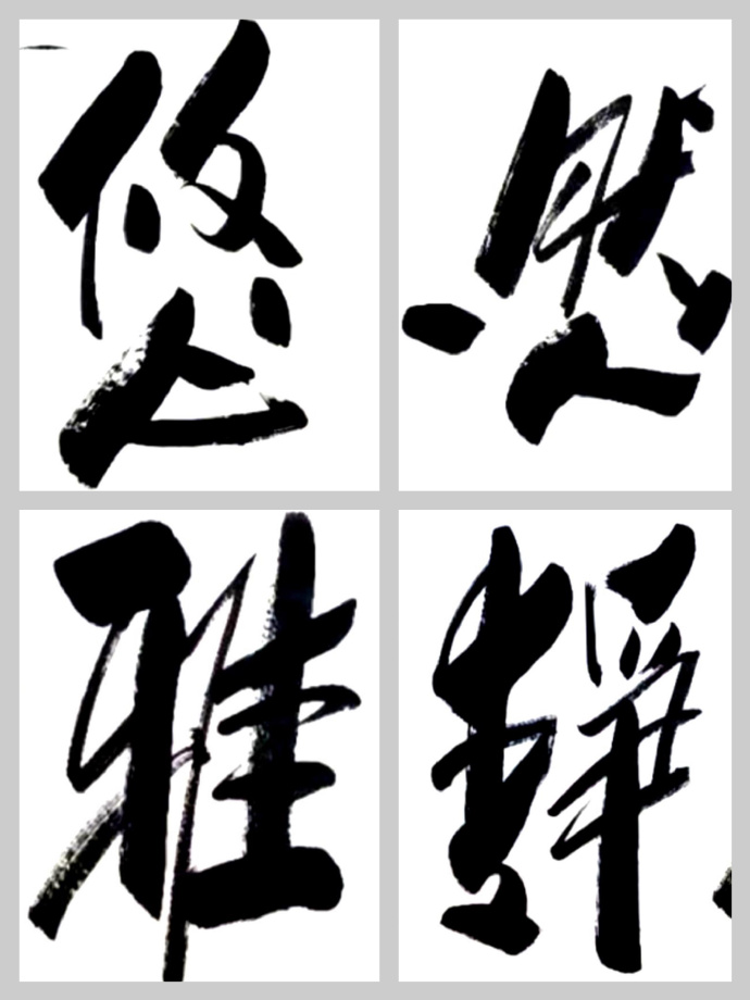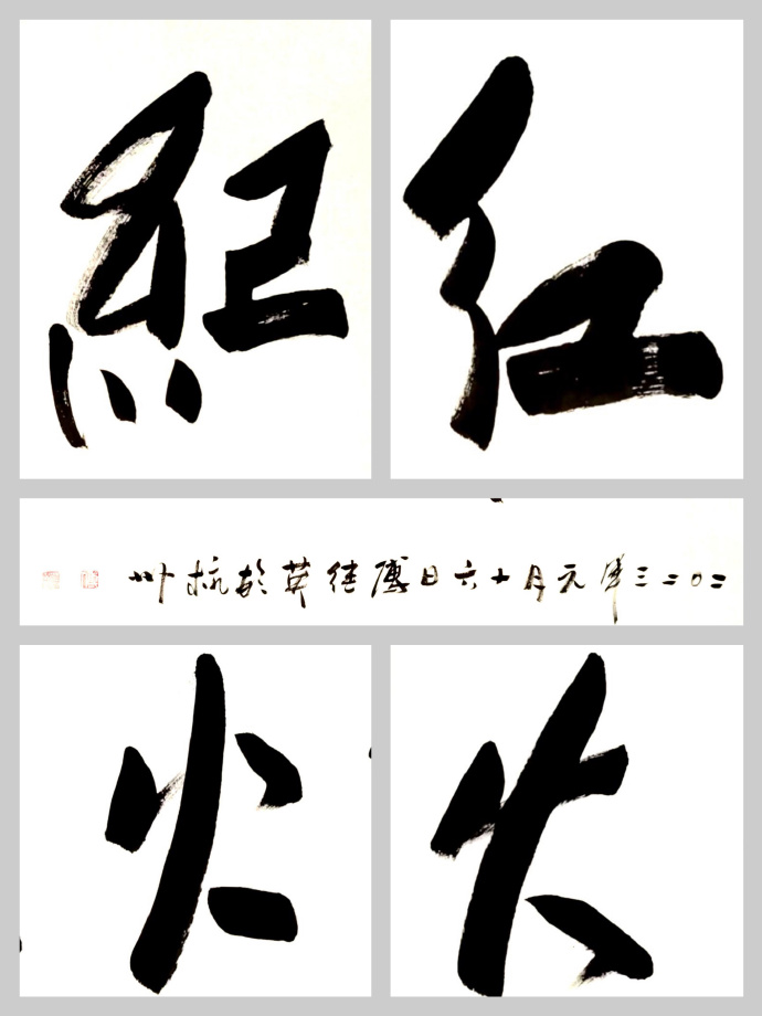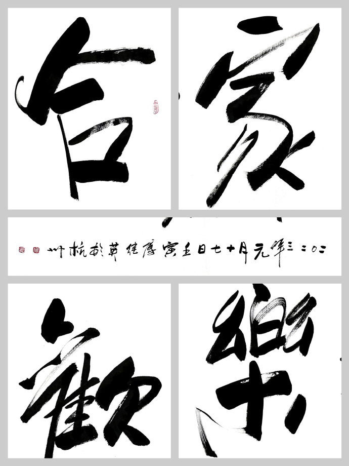 风格,既是一种艺术特征,也是一种抒情样态。傅继英书法以气骨清健的风格特点抒发情感,契合她刚强不阿、正直豪爽、胸禁豁达的性格,是她人文精神的迹化。傅继英在书画艺术道路上笃定前行的过程中,充满着坎坷艰辛和曲折离奇,其间,她体会了人情冷暖,经历了生死离别,遭受了思想、情感、精神、事业等多方面的多种打击,她说:“在各种打击中,学会了自我疗伤”。她常把被“打击”当作“打造”自己的“苦其心志,劳其筋骨……曾益其所不能”(孟子语)的良药妙方。因此,她在面对当下艺术与物欲的冲突时,面对一个物的强大性、压倒性地挤得精神、心灵疲惫时,她能有理性的反省:不忘初心,不畏艰难险阻,甘为弘扬中华民族艺术而歌而舞!同时她也清醒着:艺术发展是硬道理。艺术精神、艺术成果的转化,也应与时俱进,应该在新时代多元文化融合、多种形式、百花齐放的发展中,借助大众传媒和通俗形式,“飞入寻常百姓家”。这既是一种文化理想,也是一种文化实践。