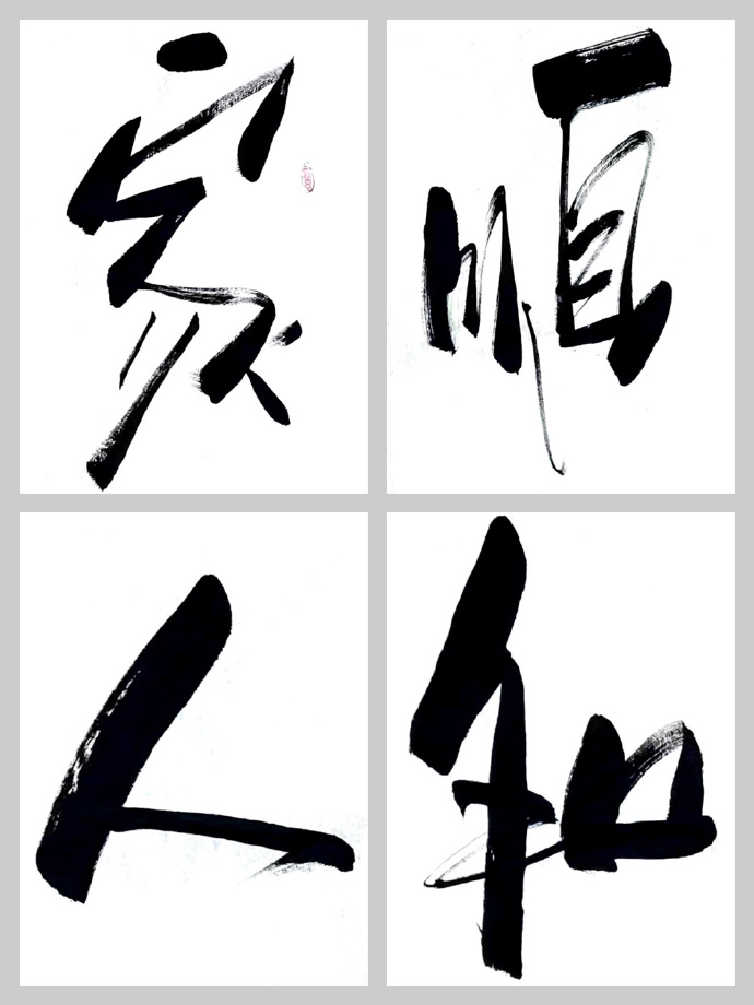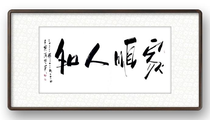傅继英书法:家顺人和。寓意人和家顺年年好,平安如意步步高。良田千顷不过一日三餐,广厦万间只睡卧榻三尺。家顺人顺事事顺利,国安民安年年心安!一家人,包容得越多,就越幸福。一家人,共同努力维护,才能长久共存。