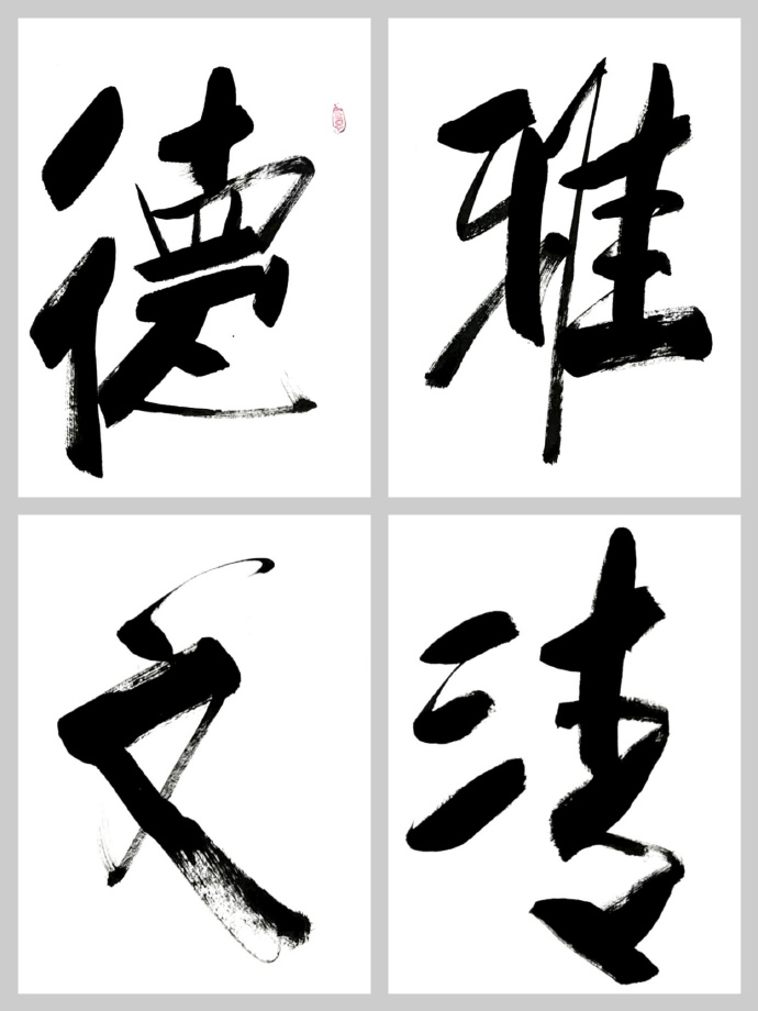 傅继英书法作品分享:德雅文清 书法是一种艺术形式,它包含了绘画、音乐等领域的专业知识和技巧。书法家通过书写汉字来表达自己的思想和情感,同时也能够感染读者。要想达到德雅文清,需要具备良好的文学修养和文字功底。只有具有丰富的知识储备才能更好地理解书法作品中蕴含的内容,从而产生共鸣,让人们感受到作品中所传达出的真情实感。其次,还应该学会欣赏文学作品。在阅读优秀文学作品时,可以得到智慧和心灵上的启发,增强对书法的认识,提高个人修养水平。