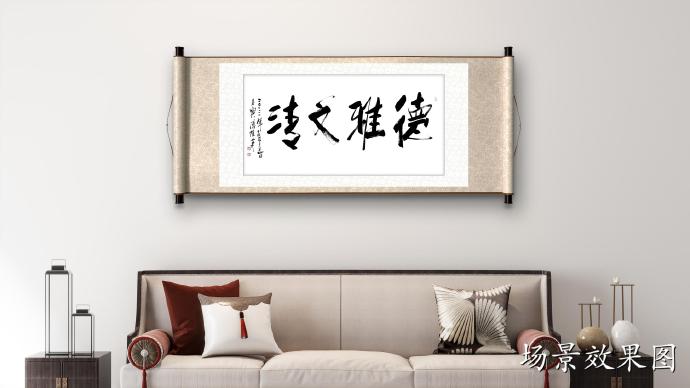 温馨又高雅的空间环境,人人都喜欢,将这幅寓意极好的书法《德雅文清》挂于家里客厅、卧室或者茶楼、酒店里,总让人感到兰花的香气满溢,整个环境被一句言简意赅的四字成语点缀得立刻高雅起来。兰花象征的君子品性,更可以让主人修身养性,对您的身心健康都大有裨益。