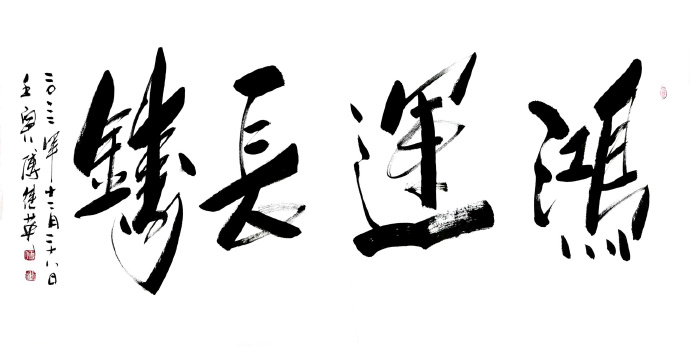 傅继英书法:鸿运长铸 。鸿运,大好的运气,铸,造就。意思是好的运气会长久停驻。这是一个美好的祝愿词,和“青春永驻”等词具有异曲同功之妙。