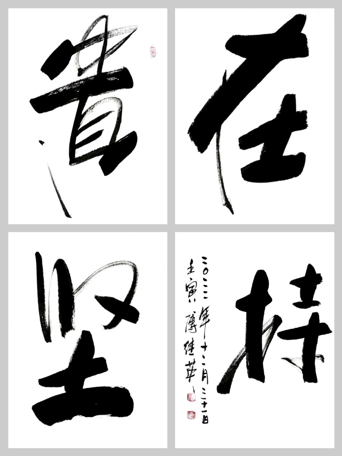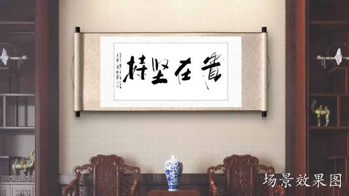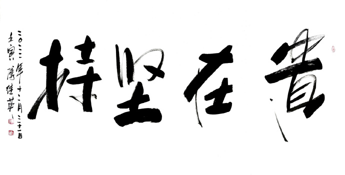 傅继英书法:贵在坚持。人生总有一些不如意的事,关键在于坚持。坚持,不是逆来顺受的活着。坚持,不是对命运的妥协。坚持,是能量积蓄。 坚持,是最好的磨石 在我们身边,有一些人,沉得下心,耐得住寂寞,也不肯轻言放弃。